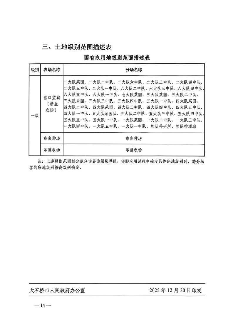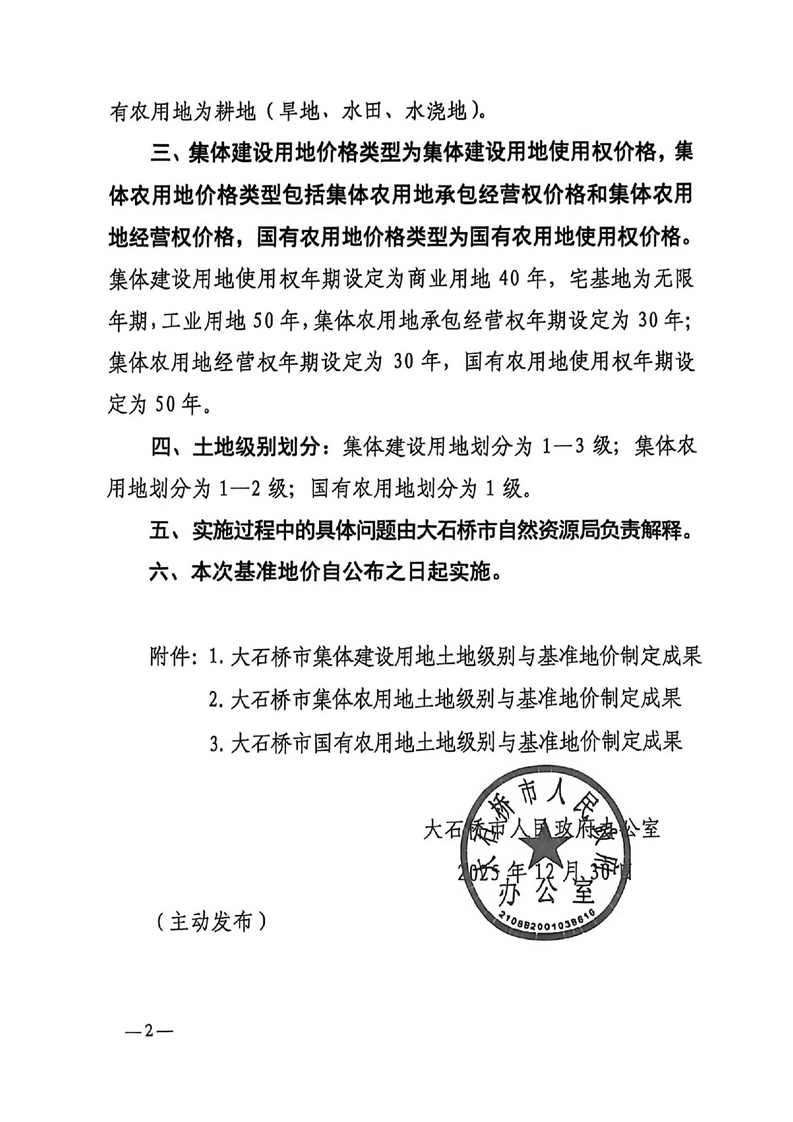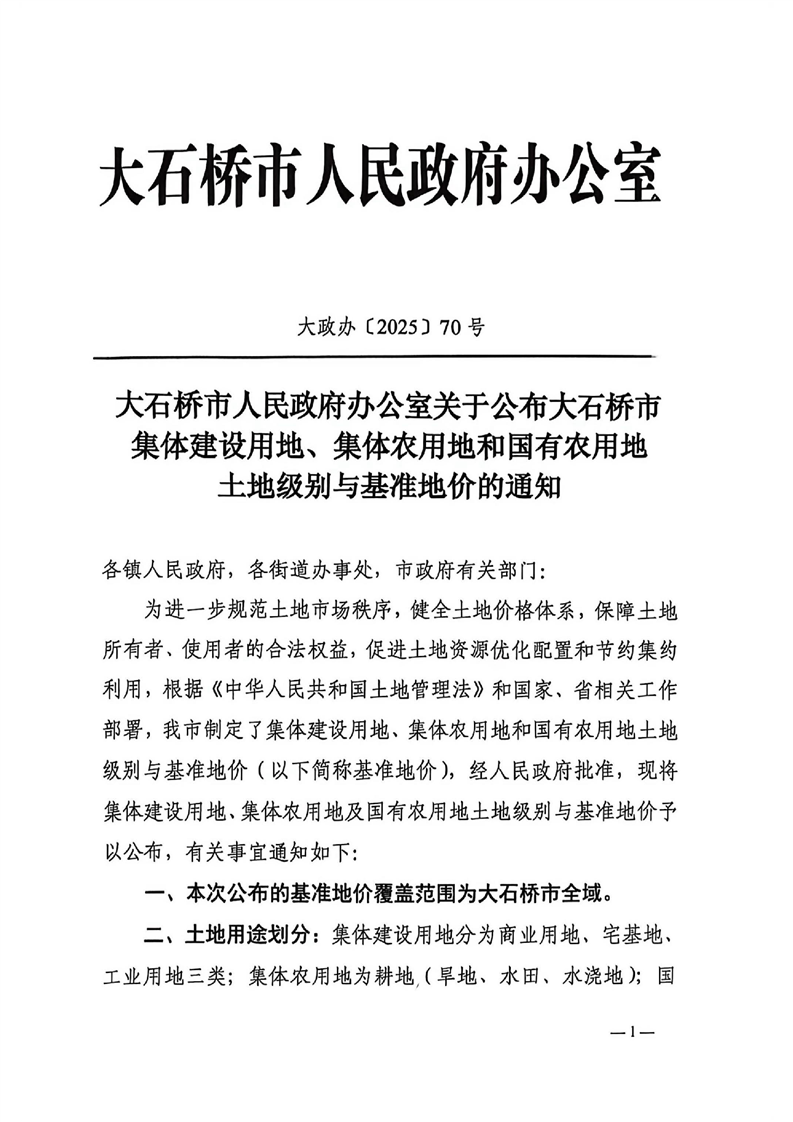 大政办【2025】70号关于公布大石桥市集体建设用地、集体农用地和国有农用地土地级别与基准地价的通知