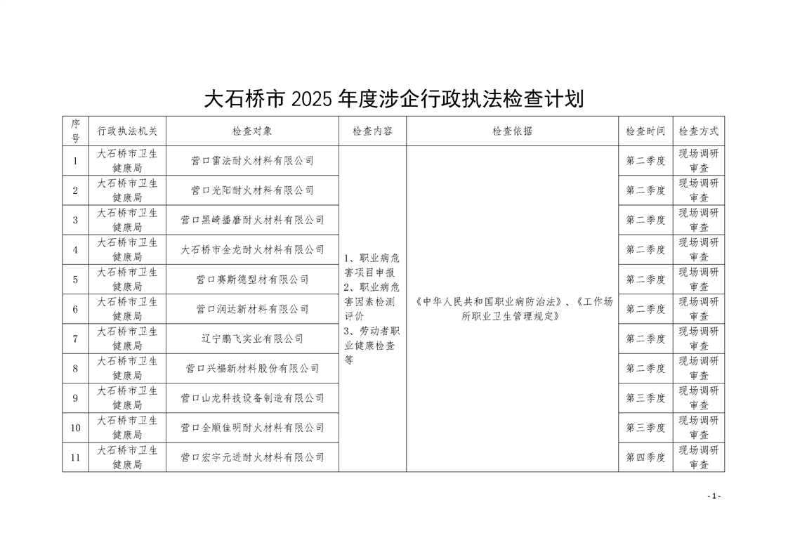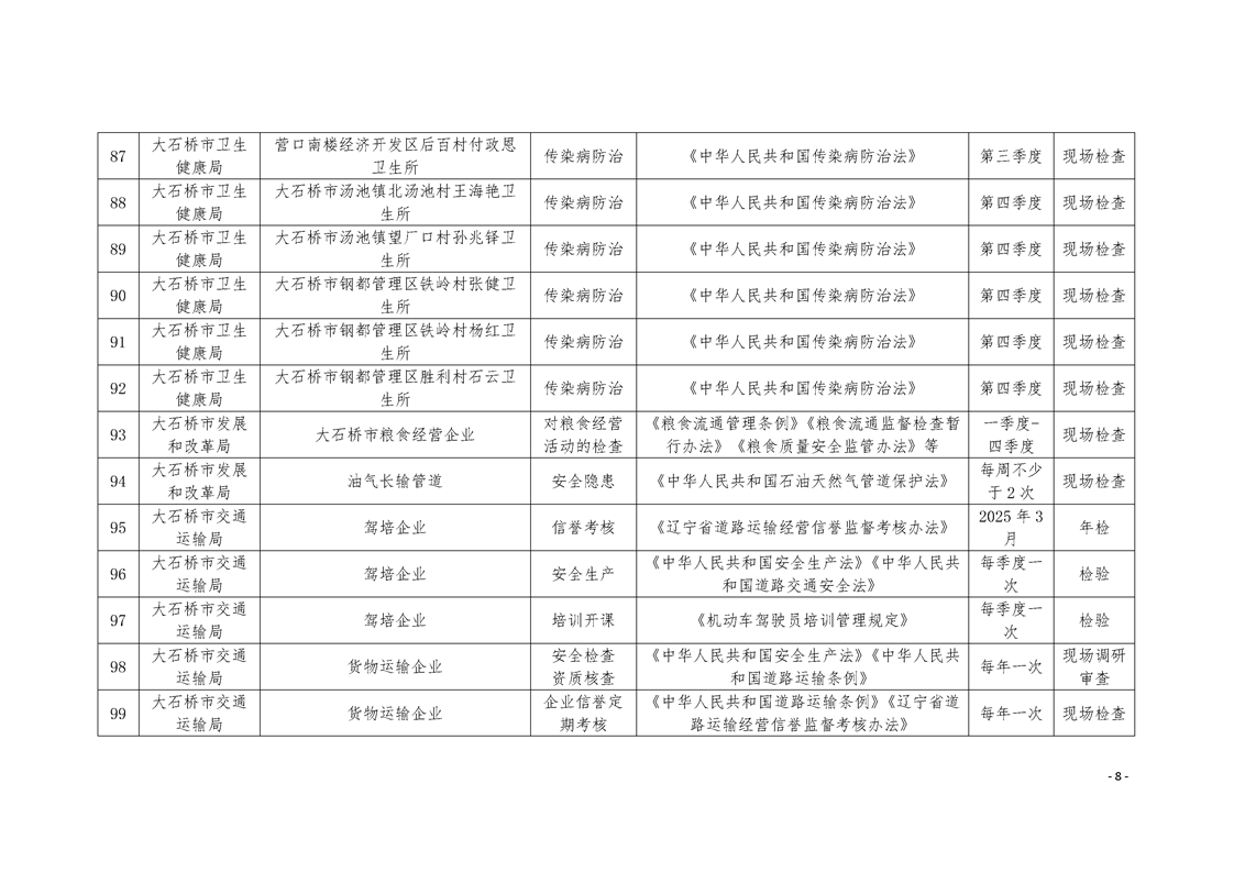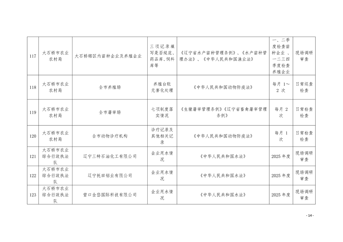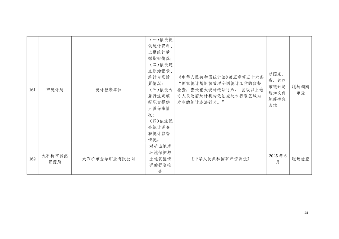 大石桥市2025年度涉企行政执法检查计划