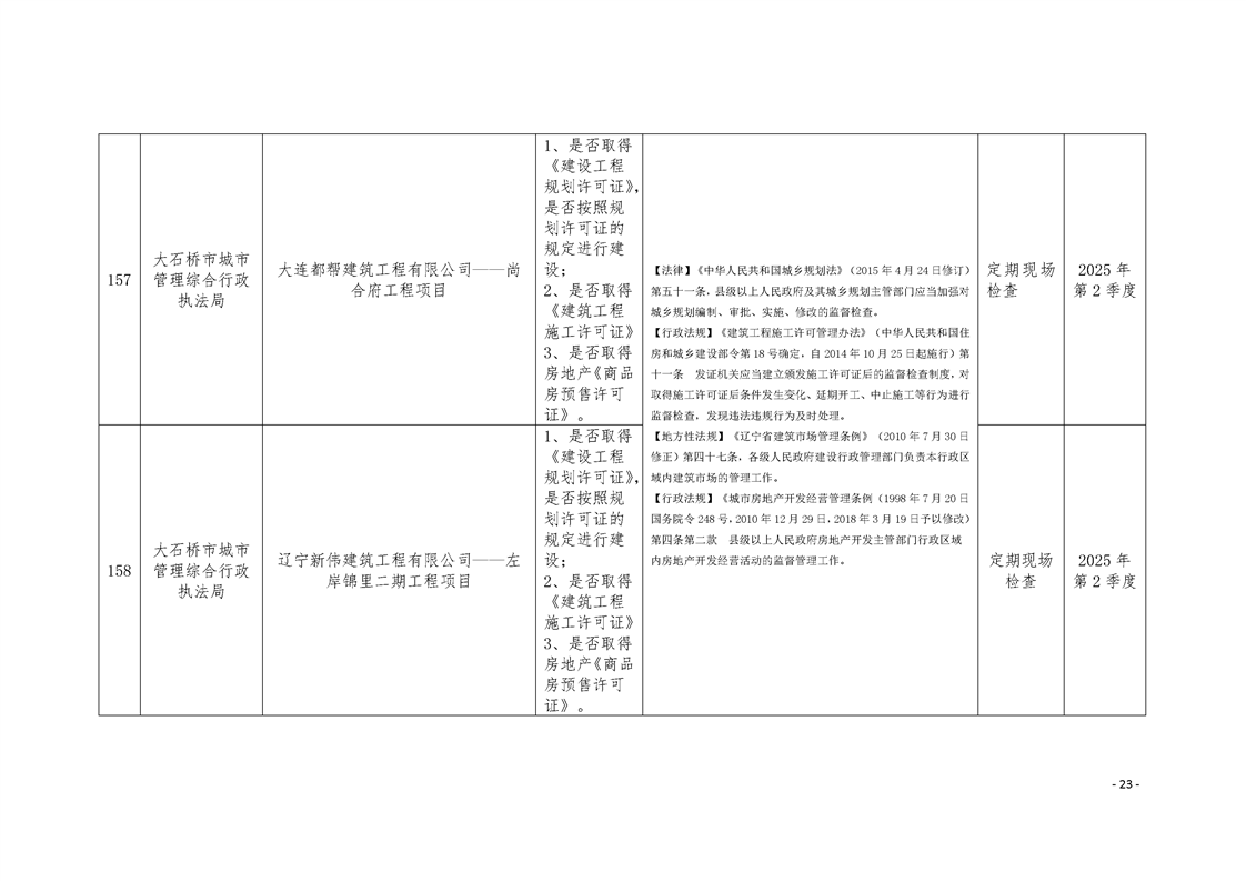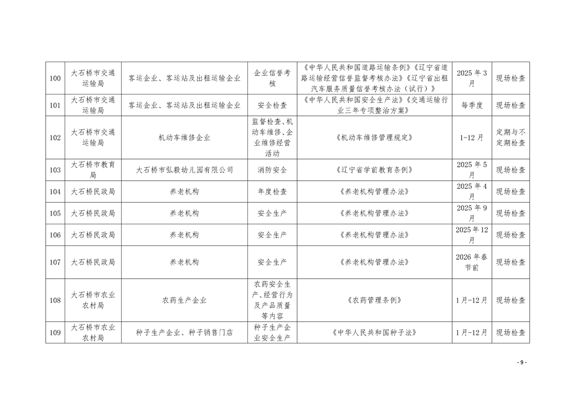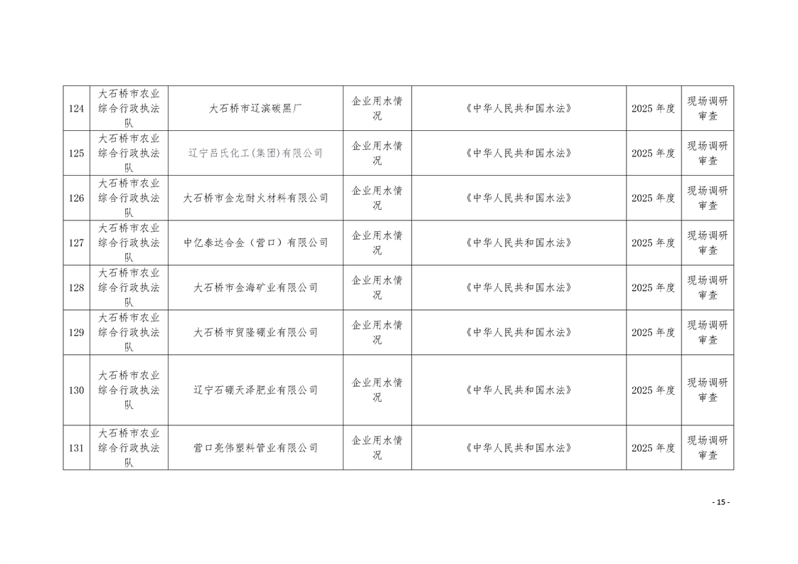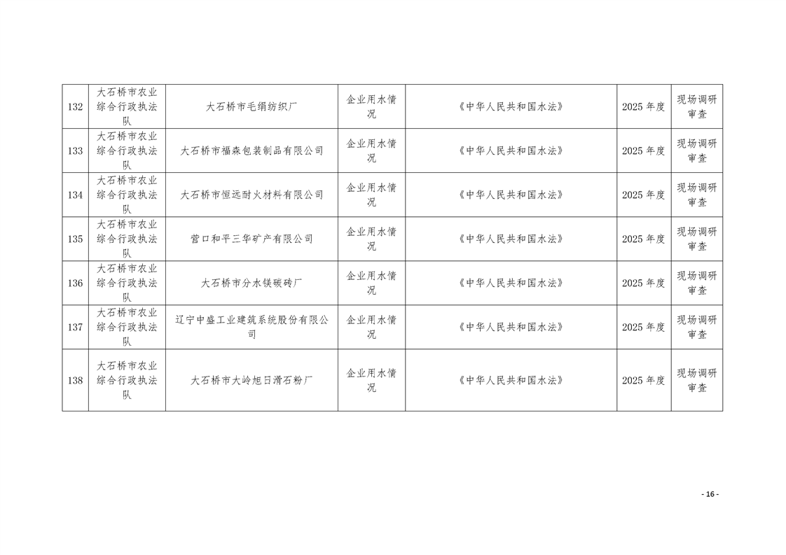 大石桥市2025年度涉企行政执法检查计划