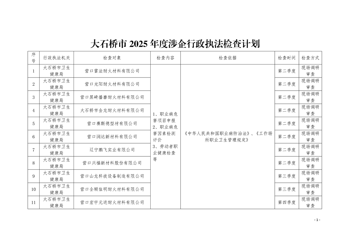 现将《大石桥市2025年度涉企行政执法检查计划》印发给你们,请认真贯彻执行。