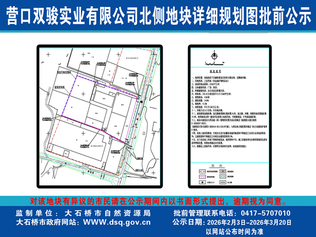 营口双骏实业有限公司北侧地块详细规划图批前公示