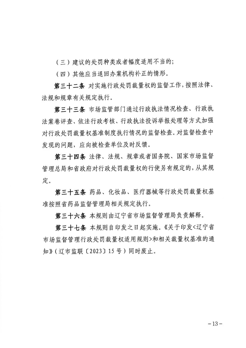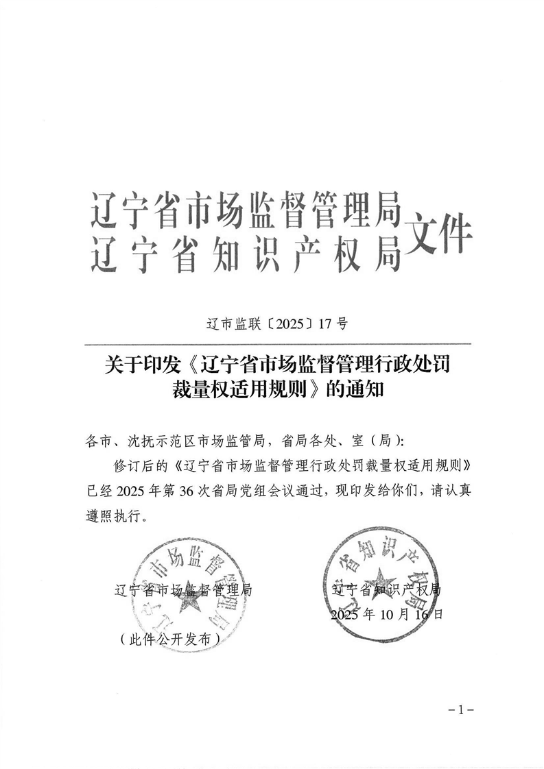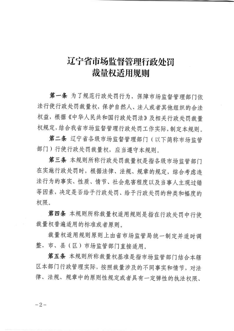 关于印发《辽宁省市场监督管理行政处罚裁量权适用规则》的通知